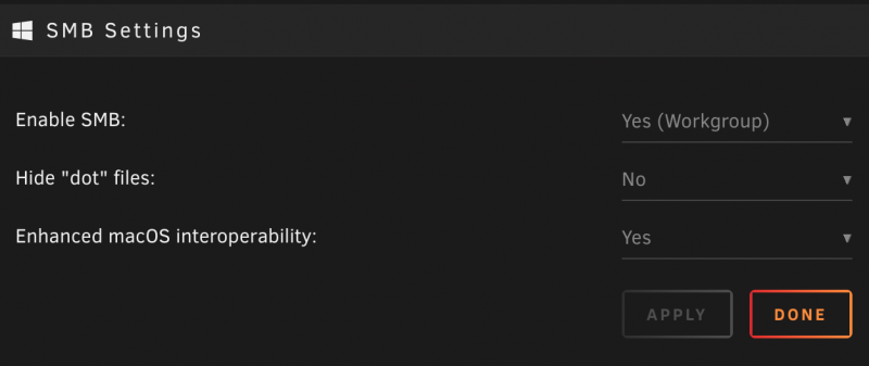 - Set "Enable SMB" to "Yes" and click "Apply" (Array must be stopped to change this).
