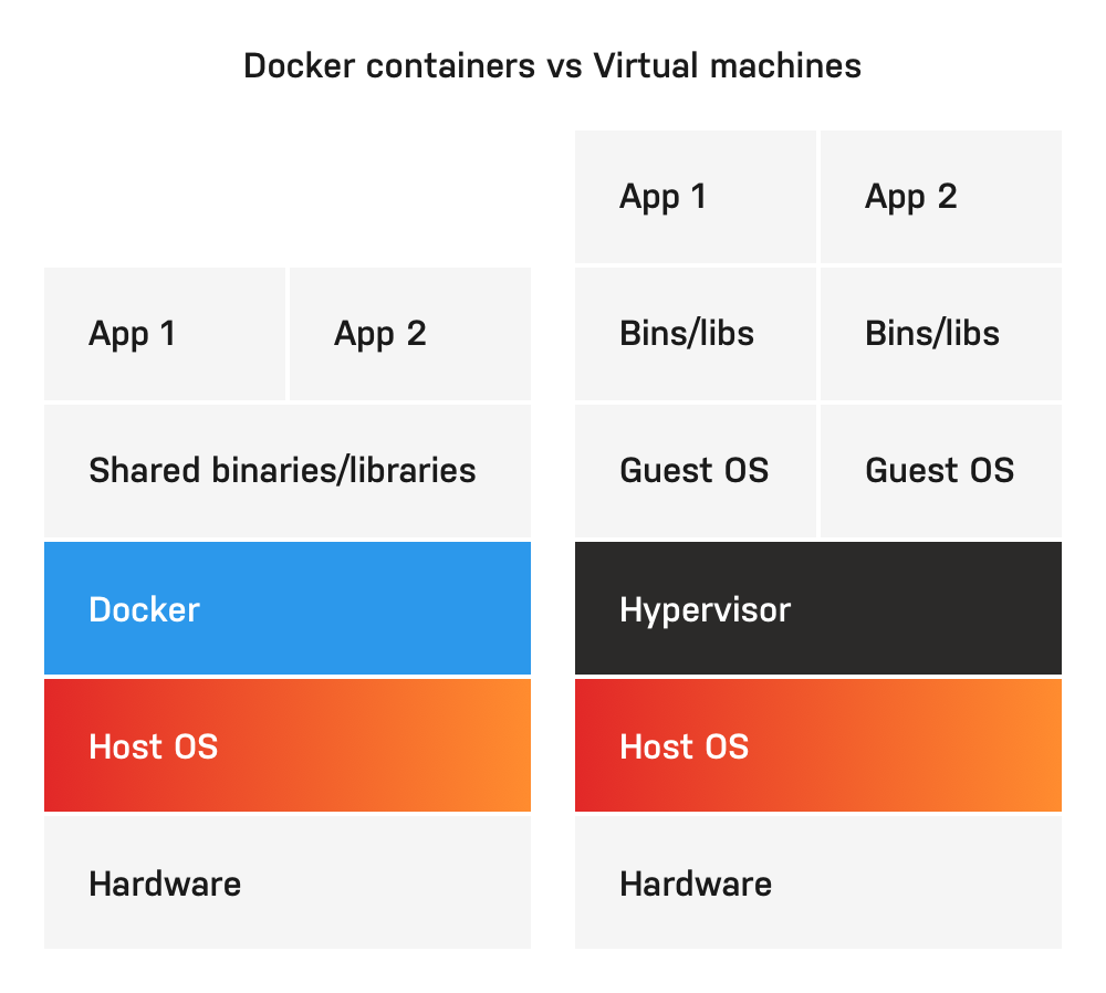 This differs from virtual machines where the entirety of the guest operating system is emulated. The overhead required to support a virtual machine is therefore much higher than the equivalent overhead for a container. Docker containers that feature common libraries and binaries do not replicate those shared resources and instead, leverage the efficiency of Linux and a copy-on-write filesystem to minimize the overhead.