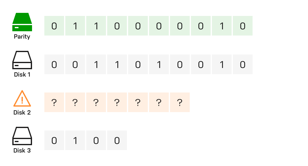 The ability to rebuild a disk using parity provides protection from data loss. Parity protection also provides fault-tolerance by allowing full usage of the system while keeping all data accessible, even when a drive has failed.